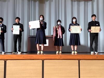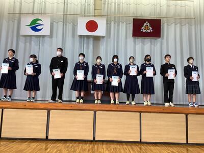 1年生では本田さん、2年生では石川さん、橋本さん、小山さん、三瓶さん、鈴木さん、谷口さん、中村さん、3年生では安斎さん、国分さんの計10名の受賞となりました。3回連続の受賞はもちろんのこと、今回初めて受賞した生徒のがんばりにも拍手を送りたいです。よく励みました!