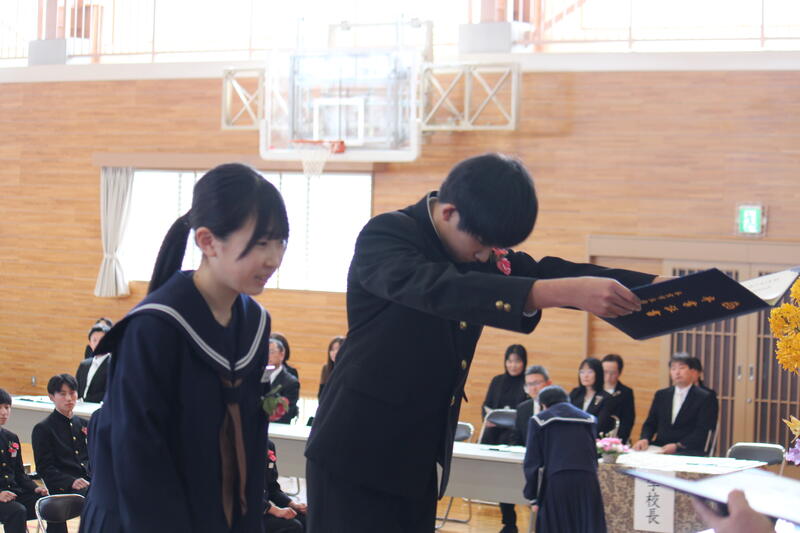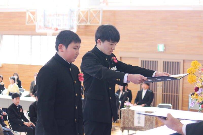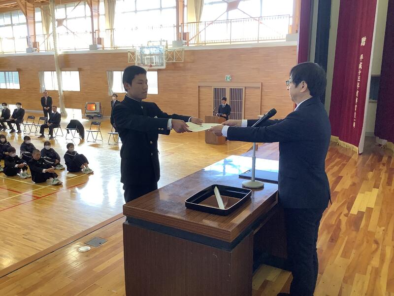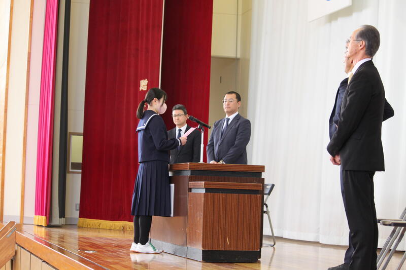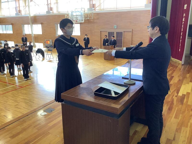 修了証書は、1年安澤さん、2年国分さんが学年を代表して受け取りました。