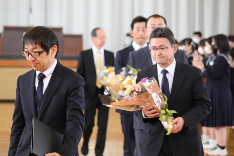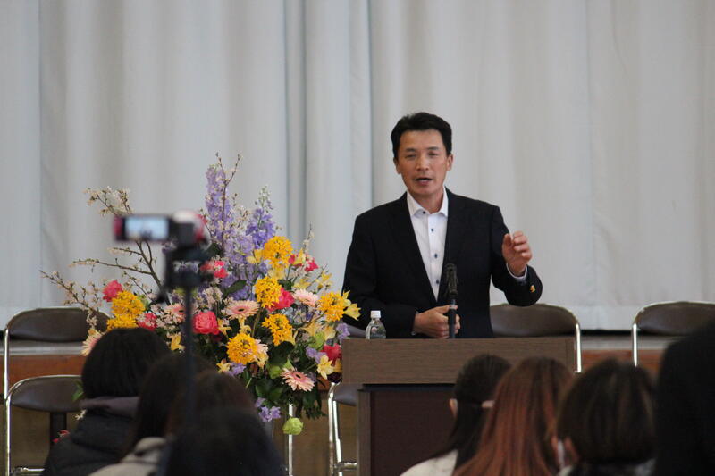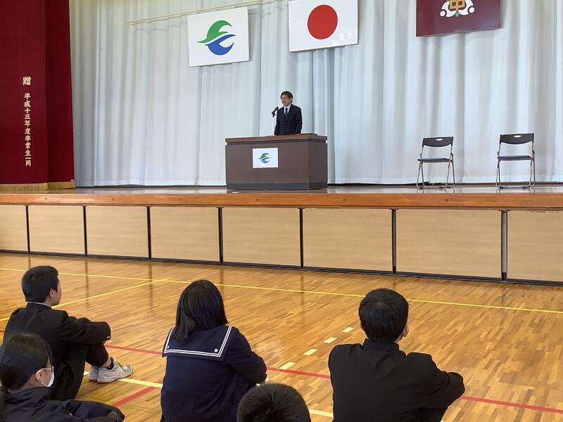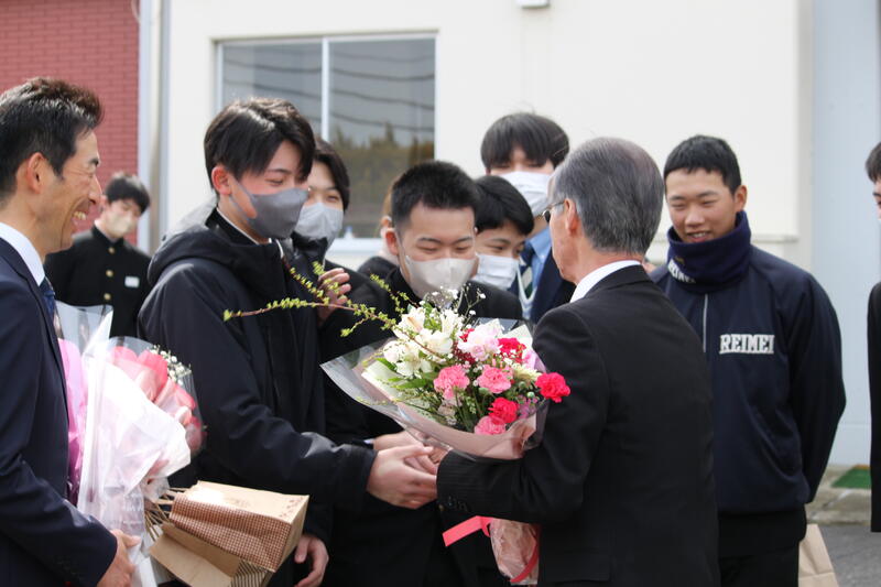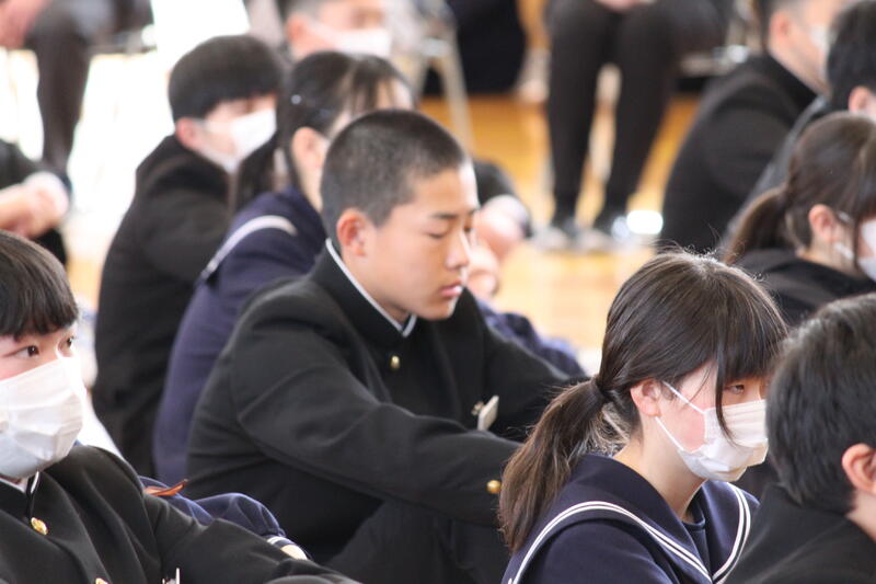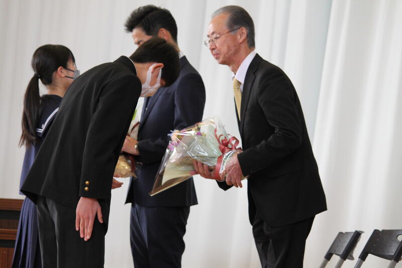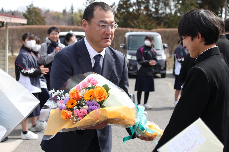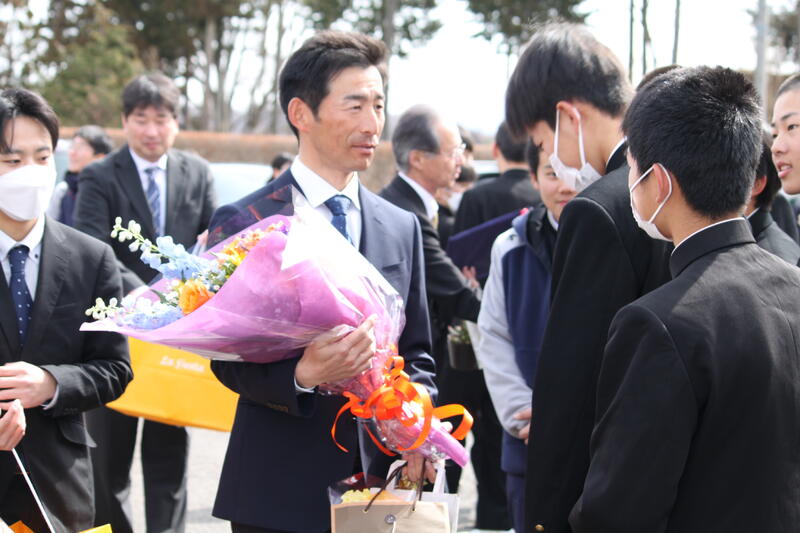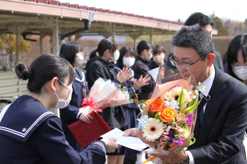 気温が上がらず、肌寒さを感じる体育館での実施ではありましたが、離任する教師の最後のあいさつを真剣に聴いている雰囲気、佐藤生徒会長からの最後の挨拶、花束や拍手のプレゼントなどで会場は、温かい雰囲気に包まれていました。