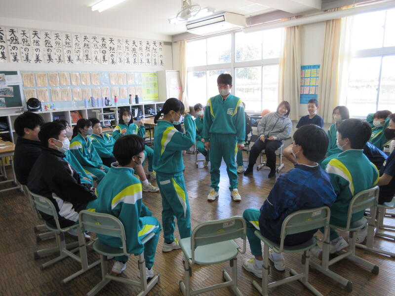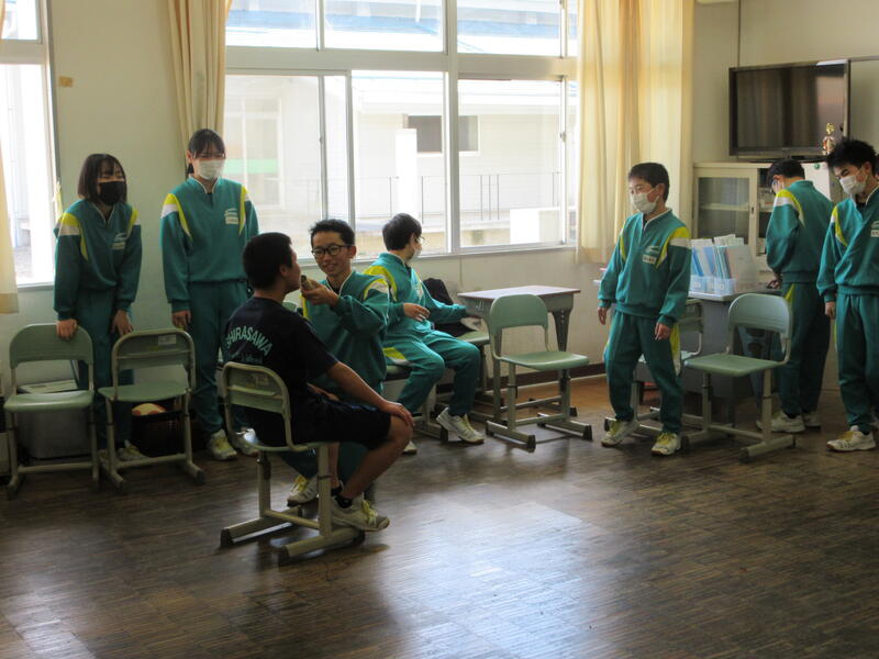 1学年では、学級ごとに分散会を行っていました。学級委員長が中心となって企画し、フルーツバスケットやイス取りゲームなどを楽しいんでいました。現学級で生活するのも明日で最後になります。よい思い出になっていればよいと思います。
