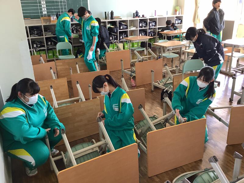今日は昨日の卒業式の余韻に浸る時間も無く、片付けから始まりました。準備から本番まで、できるだけ一緒に行動していましたが、すばらしい活動でした。主体的に活動する生徒を育成することは、いつの時代でも課題になっていますが、今回の活動では主体的に動いている感じることが多くありました。1、2年生の持ち場でベストを尽くしているその姿は、これからの白沢中学校を引っ張っていってくれることを期待させるものでした。