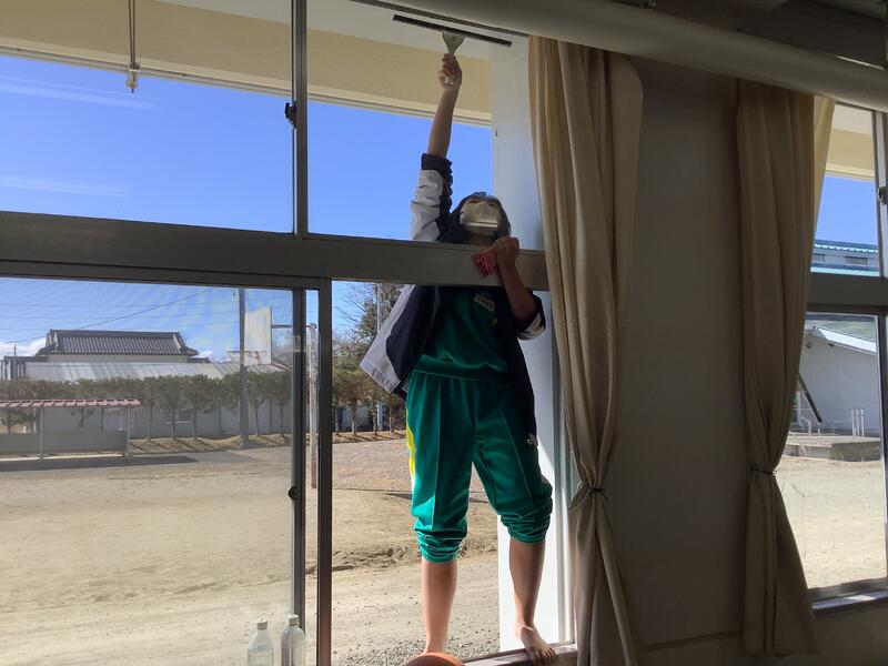 最後の清掃は、時間を多くとり、普段できない窓ふきなども行いました。きちんと清掃活動ができるのが白中のすばらしいところです。1年間過ごした教室をきれいにして、気持ちよく次の学年に引き渡すことができるように活動していました。