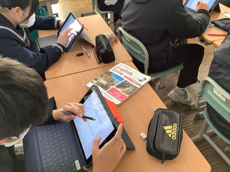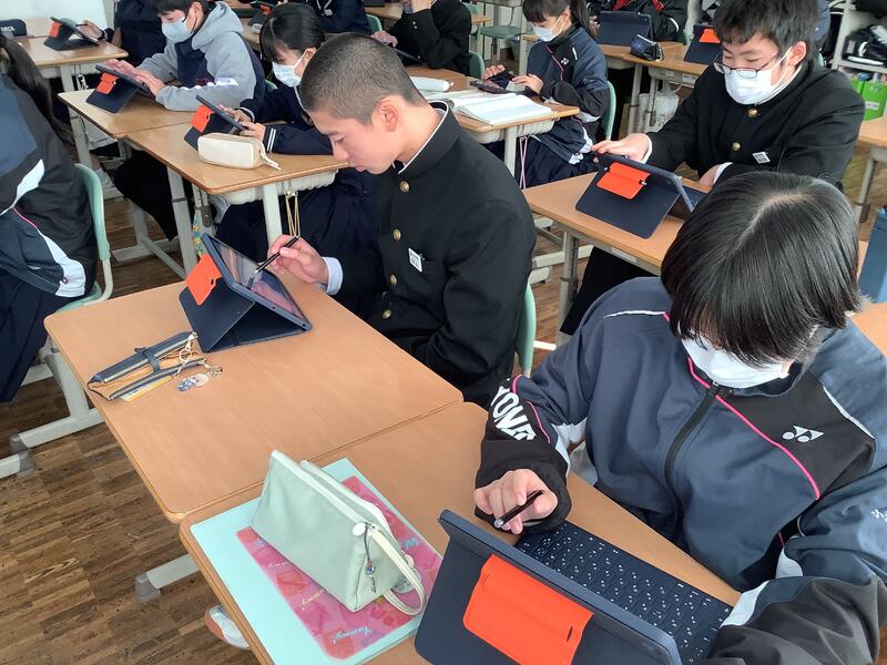 1時限目の学級活動の時間を使って、学習や学校についてのアンケートを行いました。タブレットにアンケートを提示し、一人一人丁寧に答えていました。生徒達もアンケートをタブレットで行うことに慣れてきたようです。