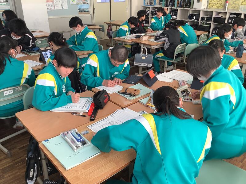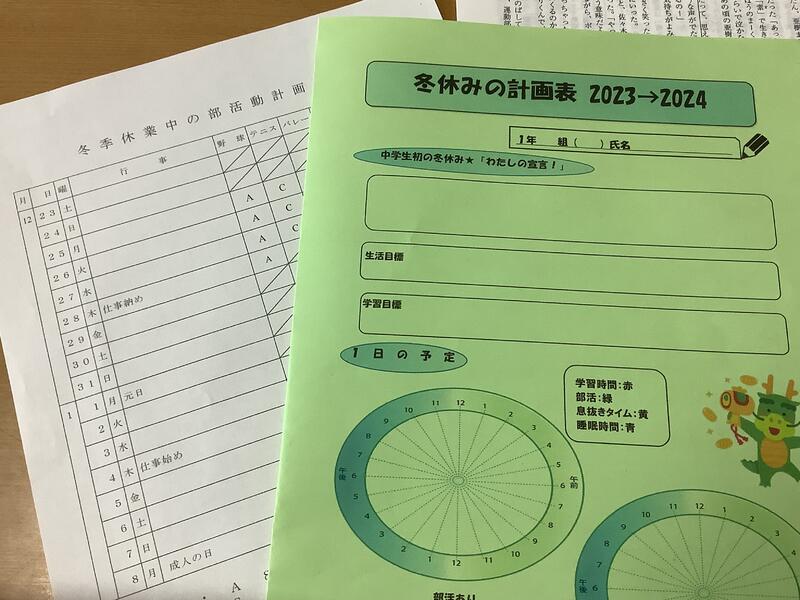 1年生では、1時間を使って、冬休みの生活・学習計画を立てていました。担任からは、何のためにやるのか、具体的にどのように書くのかを丁寧に説明がありました。生徒達は、休み中の時間の使い方を想像しながら、前向きに計画を作成していました。