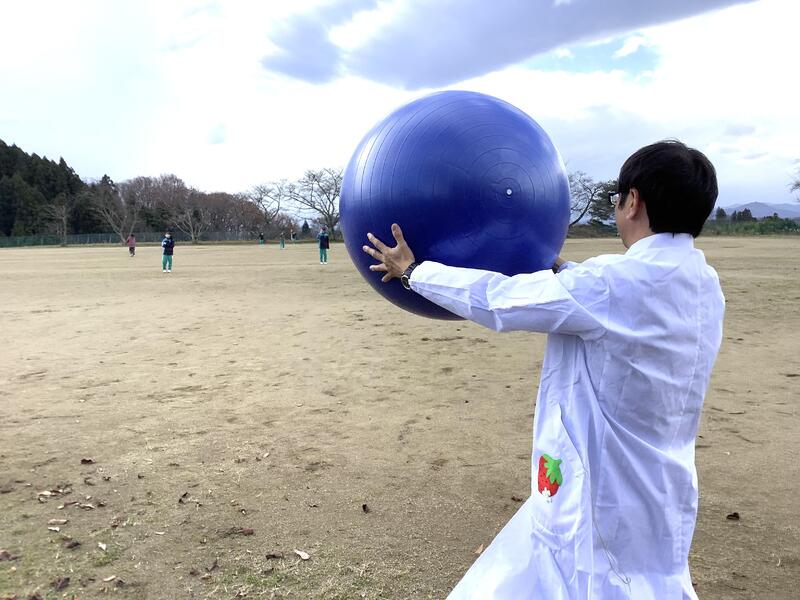 昼休みは、佐藤校長による「サイエンスショー」でした。給食時の放送で「時間がある3年生、集まれ~」と呼びかけたところ、たくさんの3年生が集まってくれました。知的好奇心が強いですね。内容は、日食の仕組みです。バランスボール(太陽)とまち針の頭の部分(月)を使ってどのぐらい離れているかを実験です。まち針の頭とバランスボールが重なるところまで離れるという実験を行いまいた。実際にやってみると校庭の端から端まで離れないと重ならないことが判明。目とまち針の頭の距離はだいたい38万kmとのこと。私自身、想像を越えてきましたが、生徒達は楽しそうでした。記憶に残るサイエンスショーでした。