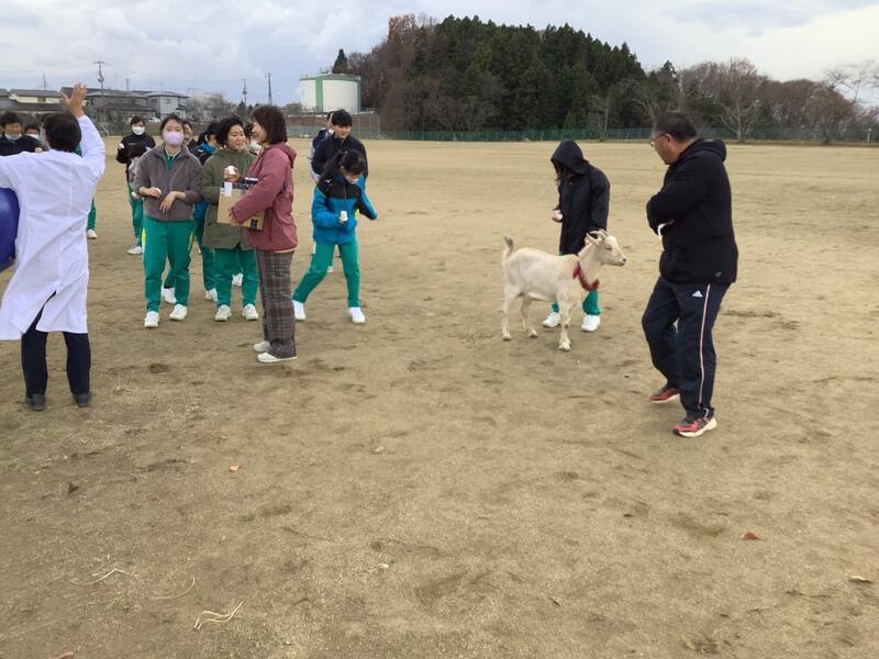 生徒達の声に引き寄せられて、いつの間にか山羊も参加していました。どうやら、迷ってたどり着いたようです・・・。
