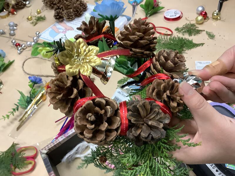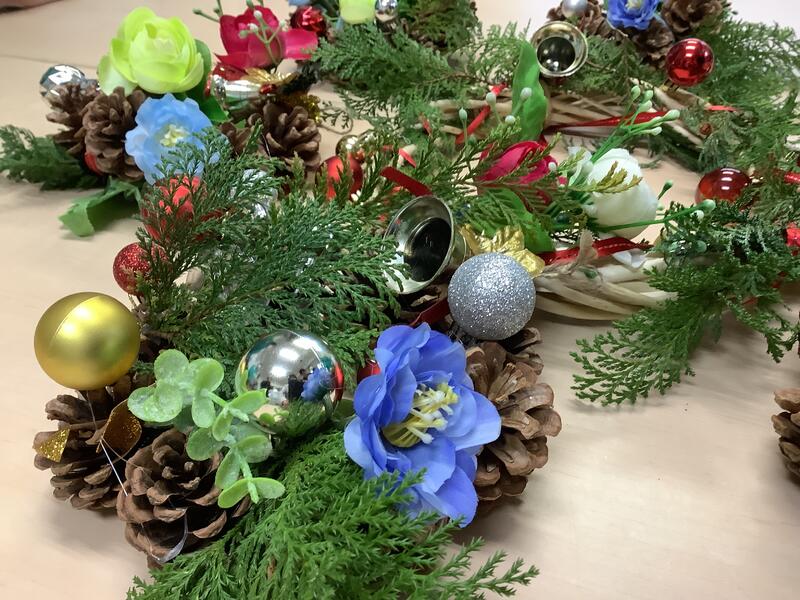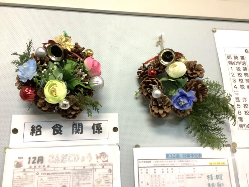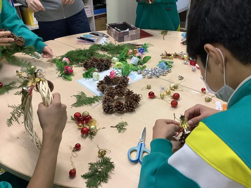 4組の制作の授業で、クリスマスリースを作成しました。器用に飾り付けをして楽しくできました。廊下の至る所がクリスマスの雰囲気になりました。