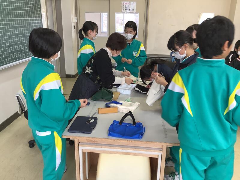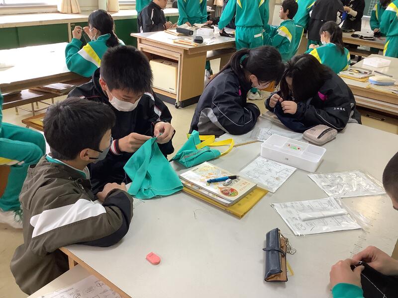 2年生の家庭の授業では、裁縫を行っていました。バッグの作成です。苦労しながらも集中して縫い付け作業を行っていました。完成すると必ず愛着がわくはずです。完成品が楽しみです。