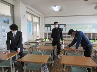 また、毎週校舎内の消毒作業と清掃を行っています。生徒の皆さんはいませんが、いつでも登校できるように準備をしています。