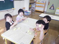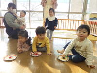 大好きなキャラクターの福笑いだったので、笑顔で手を伸ばす姿が見られました。