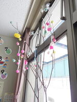 「どこにかざろうかな~」と枝をよく見て、場所を選び、飾ることができました。