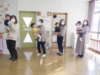 「どん」で抱っこしたまましゃがむと「きゃー」と大喜びのすみれ組さんでした。