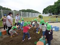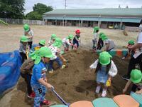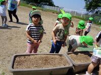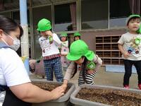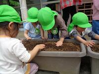 さくら組さんが、先生と一緒にあさがおの種を蒔きました。