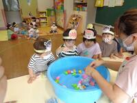 2歳児たんぽぽ組さんの魚すくいでは、好きな海の生き物を3つ自分で選ぶことを楽しみました。