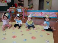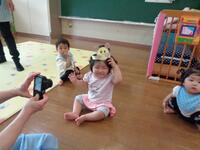 0歳児ちゅうりっぷ組さんは、わんわんやうーたんのお面をかぶってとてもかわいいです!