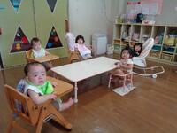 4月はみんなで手押し車に乗ってお散歩をしていたちゅうりっぷ組さん(0歳児)ですが、靴を履いて歩く子も見られる様になりました。