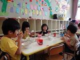 みんなで七夕の歌を歌った後は、おいしい七夕の行事食『流れ星そうめん』を食べました。