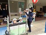 まだ歩けないお友だちは、ベビーカーに乗って先生と一緒にゴールです。