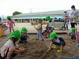 たんぽぽ組さん(2歳児)は大好きな砂場で砂遊びを楽しんでいます。