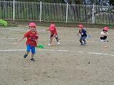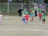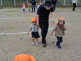 1歳児すみれ組さんは、予行練習では泣いていたお友だちもいましたが、当日はみんなニコニコでゴールすることができました。ゴールにいる先生をめざして一生懸命走りました!