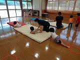 犬やうさぎなど様々な動物になって歩いたあと、マットの上を転がります。