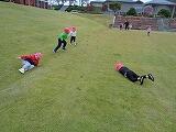 まずは体をよく動かし、準備体操です。けがのないよう、体を大きく動かします。