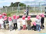 3歳児さくら組さんは、新しく使えるようになった遊具の使い方や約束を先生に教えてもらっています。