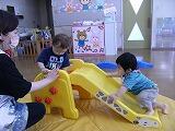 この日は室内用のすべり台で遊んでいます。階段の上り降りもだんだんスムーズになってきて、のぼって滑ってを繰り返し楽しんでいます。
