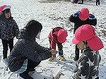 「雪ってさわるとおもしろいね。」「あっ、つめたい!」「せんせい、ぼくのてにさわってみて~」