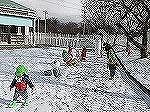 園庭に降り積もっている雪を見て大喜びの子どもたち。寒くないように準備をして、戸外に飛び出しました。