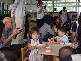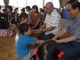 おじいちゃんおばあちゃんが来るのを楽しみにしていたすみれ組さんとゆり組さん。友達のおじいちゃんおばあちゃんが自己紹介してくれると、興味津々で聞いていました。わらべうたの「お寺のおしょうさん」「そうめんや」は一緒に歌いながら楽しみました。