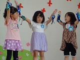 ちゅうりっぷ組さんは絵本「はらぺこあおむし」のあおむしになりきって、歌ったり踊ったりしました。最後は綺麗なチョウチョに大変身。たくさんの拍手をいただきました。