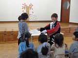 2歳のちゅうりっぷ組さんと3歳のさくら組さんはお話し会に参加しました。図書ボランティアの方々に来ていただき、手遊びやペープサート、絵本をクラスの友達みんなで楽しみました。