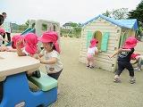 1歳のりんご組さんは戸外遊びが大好き、小さな歩みで探索活動を楽しんでいます。