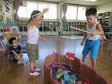 4歳のすみれ組さんは経験したことを再現して遊びます。