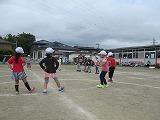 10月3日の運動会に向けて、ゆり、すみれ組さんは練習を頑張っています。