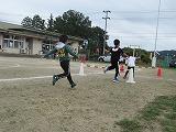 すみれ組さんのかけっこ競争はカードと同じ品物を持ってゴールします。品物を手にすると安心してしまいペースダウン・・・。「ゴールまで走るんだよ」と促されて頑張っています。