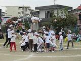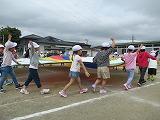 子ども達が大好きな玉入れ、練習では互角の勝負でしたが、当日は白組が勝ちました。