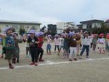 すみれ組の遊戯は「ジャンボリミッキー」の曲に合わせて踊りました。自分たちで隊形を変える練習を頑張っていた子ども達。当日もバッチリ決まりました。