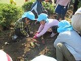 今週はゆり組さんがお芋を掘りました。ずっと楽しみにしていたゆり組さん、掘り出した瞬間から「あった」「こっちにもあった」「見て見て大きい」と歓声が沸きました。