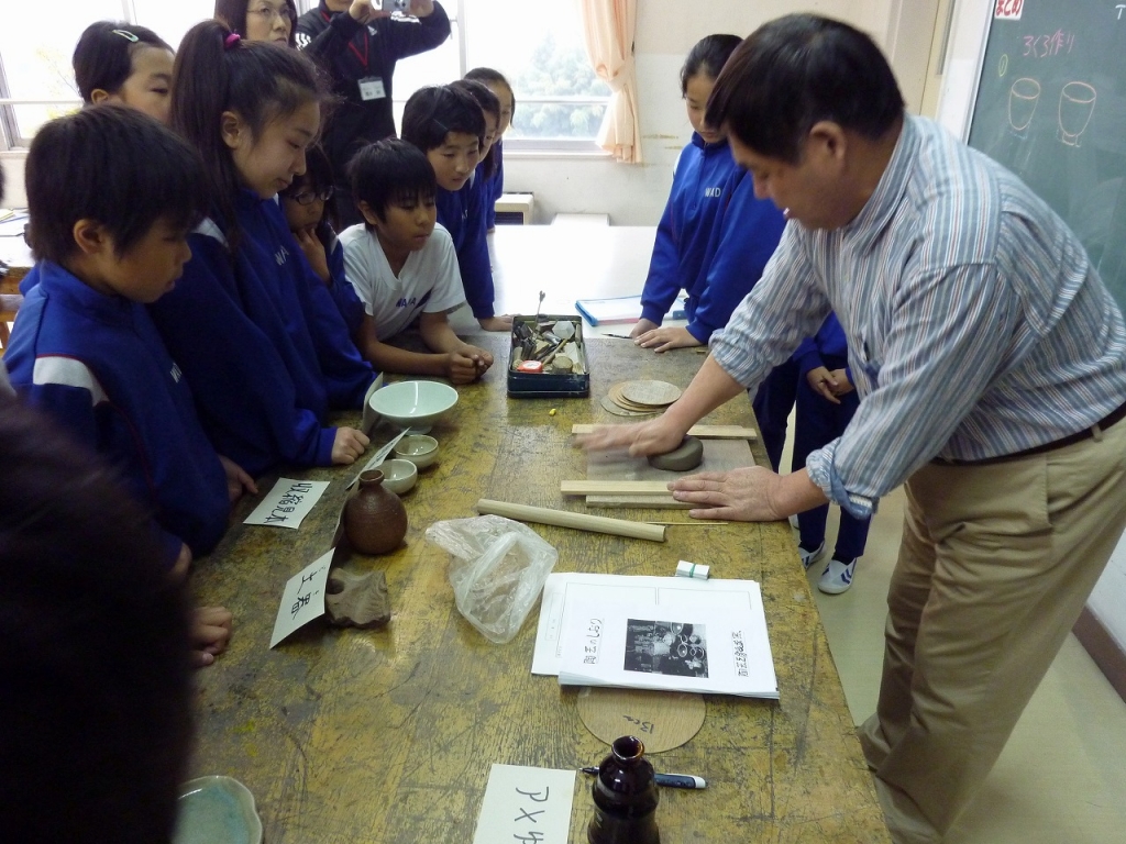 2014年11月12日 11時23分11月12日(水),わだっ子の5年生が,「陶芸教室」で,陶芸を学びました。子どもたちのために,陶芸工房氏家窯の陶工・氏家寿男様が来校されました。昨年度もご支援を頂きました。