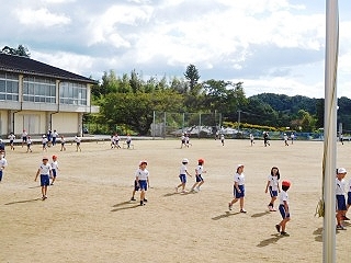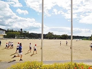 晴天に恵まれた本日,業間の「ランランタイム」に,全児童と教職員が校庭へ出て,音楽に合わせて10分間走りました。走っている姿から,ダラダラではなく,しっかりとした姿勢で一生懸命に走る姿を見ることができました。今月の16日にあります駅伝大会に関わる4年生から6年生の走りは,いつもと異なり力強い走りが見られました。教師も子どもたち同様に,校庭を一緒に走ります。