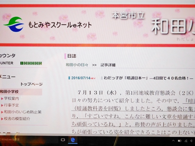 和田小学校の様子を紹介して頂いています「もとみやスクールeネット」で,16日,和田小学校へのアクセス数が10万(100,000)に達成しました。