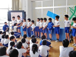 7月20日(水),今日も「出席100%」です。全員参加の基,第1学期終業式が行われました。まず校長から,1学期の子どもたちの努力している姿や成果について伝えました。次に,「1学期を振り返って」と題して,2年生と5年生の一人一人が「努力したこと・できるようになったこと・夏休みの過ごし方」など,全員の前でしっかりと話すことができました。どの発表も,子どもたちの夢や目標を叶えるために,日々努力した様子が伝わりました。素晴らしい子どもたちの姿でした。