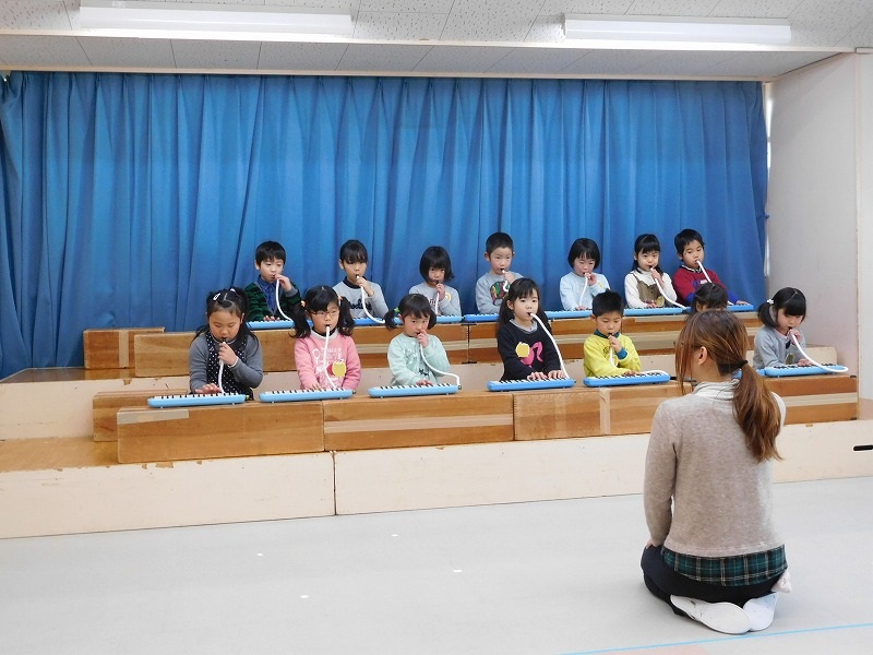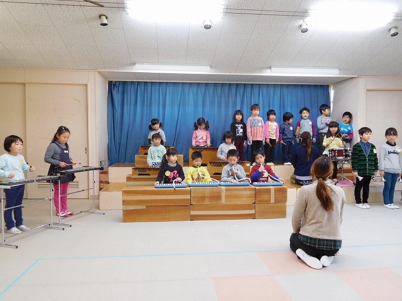 今回の「合奏発表会」では,①合奏「しあわせなら てをたたこう」②ハンドベル「きらきら星」③鍵盤ハーモニカ「こぶた きつね ねこ」・・・・⑧合奏「世界に一つだけの花」と,8曲の発表がありました。どの発表も,子どもたちの真剣な表情と,楽しい表情が見られました。このように年少さんの合奏,年長さんの合奏,そして年少・年長さんの合同による演奏など素晴らしい演奏を味わえたことに心より感謝申し上げます。「園児たち,正しいリズムで息を合わせた合奏ができていました。本当に素晴らしい園児たちです。ありがとうございました。」と,称賛の声を掛けたいです。正に,園児(子どもたち)からのプレゼント(発表)です。最後になりますが,ご支援をされた和田幼稚園の園長様はじめ先生方に感謝申し上げます。