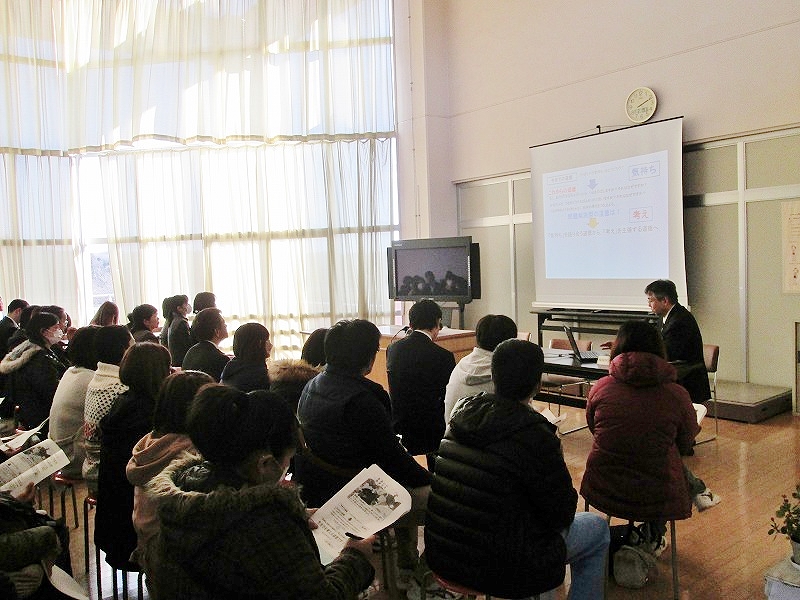 また,校長から「これからの道徳教育」という演題で,保護者の皆様方へお伝えしました。今,「学力向上」と強調されていますが,「学力」を支える部分の「こころの力」の育成が重要視されるようになりました。すでに昨年,文部科学省や中央教育審議会から,「これからの道徳教育」について示され,①道徳的思考力・判断力,②道徳的心情・実践意欲,③道徳的実践力の「資質・能力」の育成が大切となり,3点をバランスよく育成することが大切になります。特に,「思考力・判断力」,「実践意欲」,「実践力」の3点を育成することが重要となります。これらの「力」こそ,「こころの力」(道徳性=問題解決の資質・能力とも言えます。)です。学力を高めるには,これらの「こころの力」を育むことを併せて進めなければなりません。今までに,和田小学校では,「こころの育み」に関わる教育活動を進めてきました。さらに,「こころの育み」に関わる保護者と教員との懇談会も実施して参りました。今回の講話にて,「これからの道徳教育」をお伝えし,学校と保護者の皆様方とご一緒に子どもたちの「こころの力」を育めるよう願います。