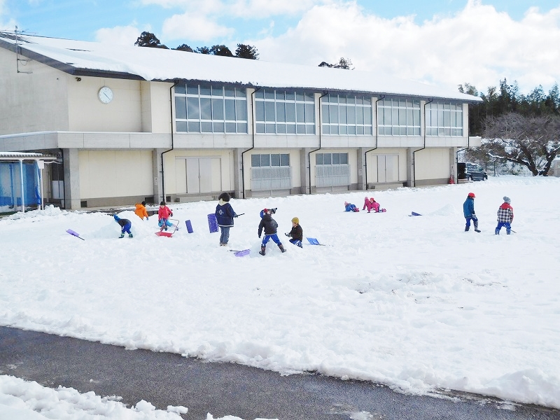 和田幼稚園の子どもたちも,雪遊びで楽しみました。子どもたちが「雪」で遊ぶこの季節こそ,冬の光景です。今後も,大雪になるかもしれませんが,安全確保を最優先して地域の皆様,保護者の皆様とのご協力により進めて参りたいと考えます。よろしくお願いいたします。