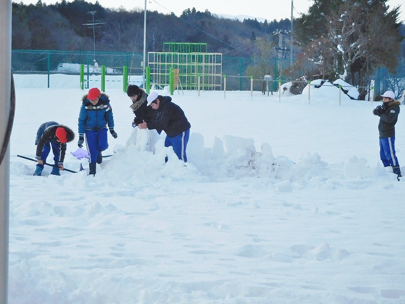 1月19日(火),18日は大雪で「雪遊び」ではない状況でした。登下校や学校生活の中での安全確保,校地内,周辺道路等の雪片付けなど,地域の皆様,保護者の皆様のご理解とご協力により安全な登下校ができました。ありがとうございました。