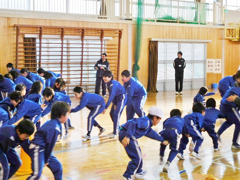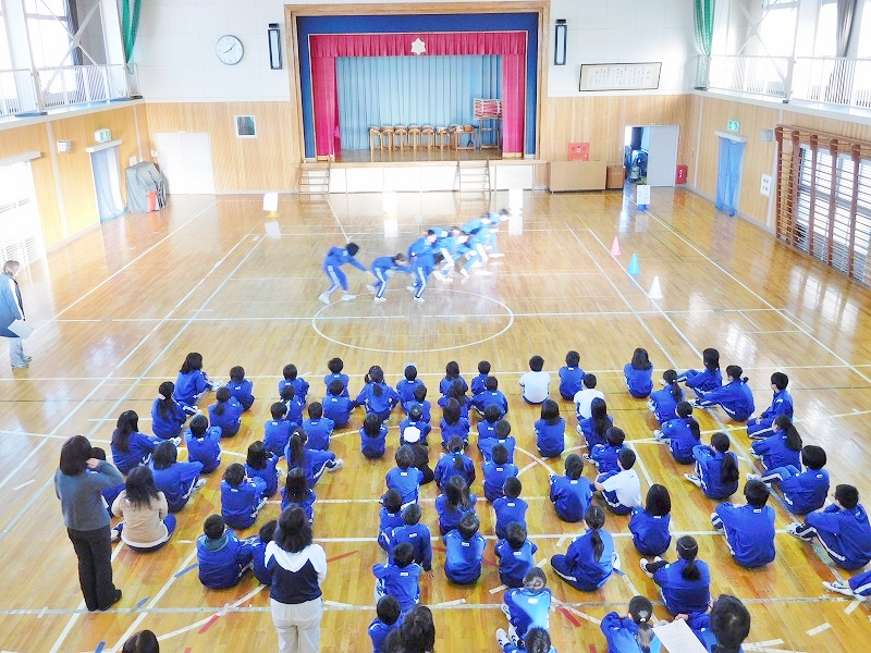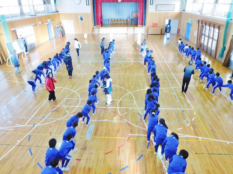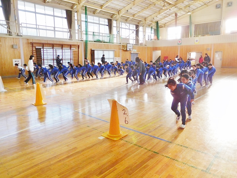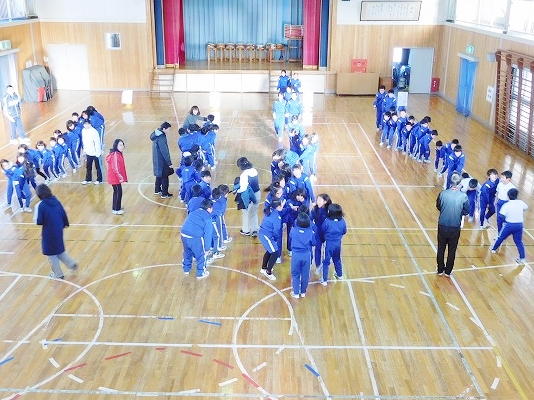 1月22日(金),集会活動が児童会の運動委員会による計画で進められました。1年生から6年生まで,異学年編成のチーム(1・3・5年の男女別,2・4・6年の男女別)により,ゲームを工夫して「つながり愛」を育む場と機会を設けました。運動だけでなく心のつながり愛もゲームの中に見られました。朝の寒い時間帯でしたが,体育館内は子どもたちの「つながり愛といたわり愛」により,熱気を帯びていました。