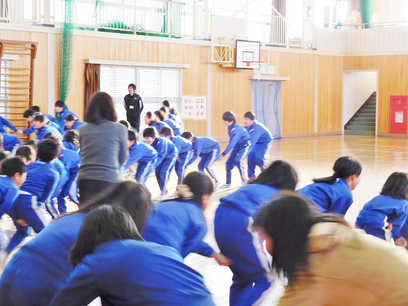 運動委員会の説明・模範演技。チーム編成後,練習!「わあ!手が離れちゃう」